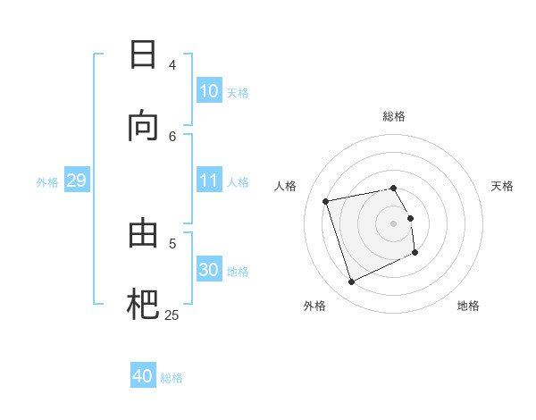 日向 由杷さんの総格は40画の2点!