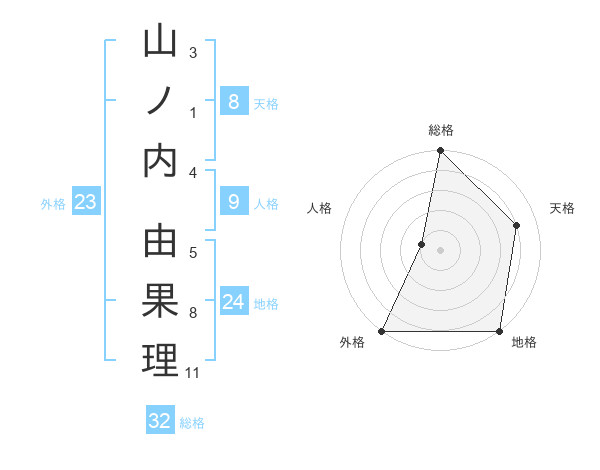 山ノ内 由果理さんを姓名の画数から五運を鑑定