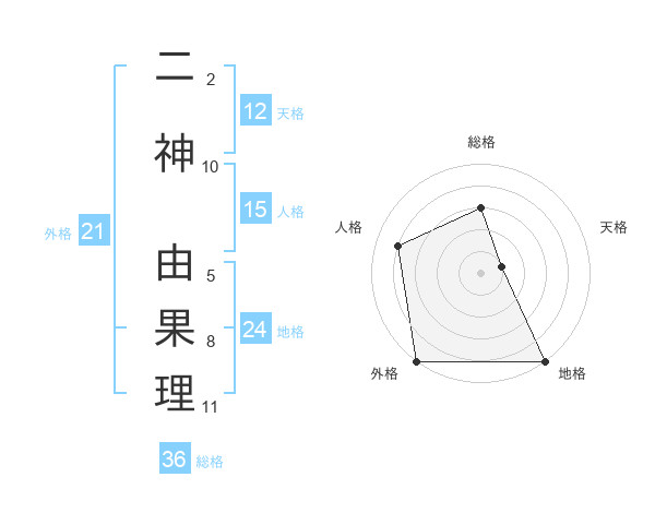 二神 由果理さんの外格は21画の5点!
