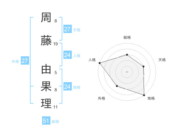 周藤 由果理さんを姓名の画数から五運を鑑定