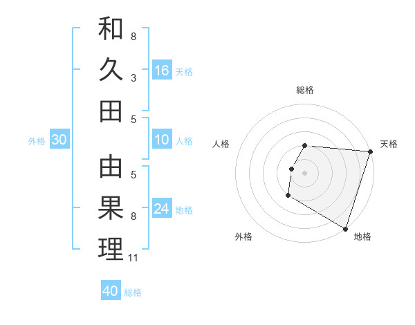 和久田 由果理さんを姓名の画数から五運を鑑定