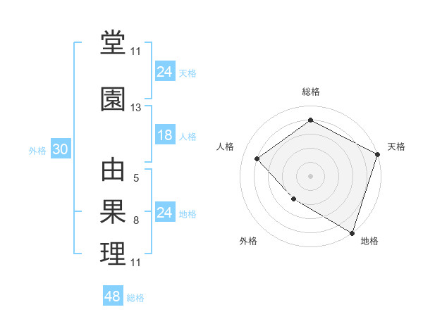 堂園 由果理さんを姓名の画数から五運を鑑定