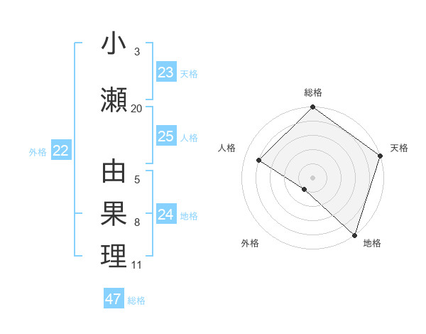 小瀬 由果理さんを姓名の画数から五運を鑑定