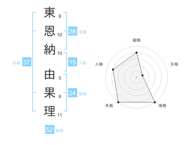 東恩納 由果理さんを姓名の画数から五運を鑑定