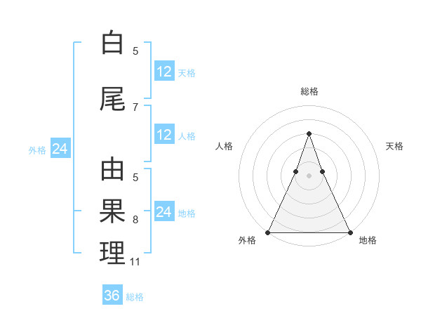 白尾 由果理さんの外格は24画の5点!