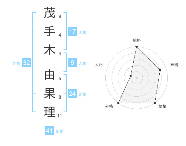 茂手木 由果理さんの天格は17画の4点!