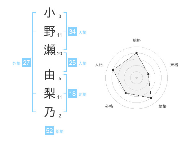 小野瀬 由梨乃さんを姓名の画数から五運を鑑定