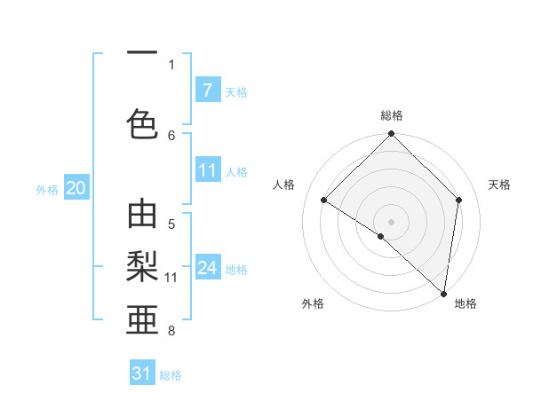 一色 由梨亜さんを姓名の画数から五運を鑑定
