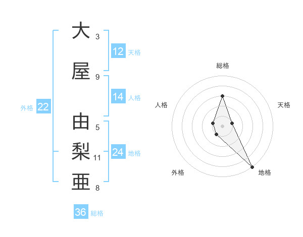 大屋 由梨亜さんの総格は36画の3点!