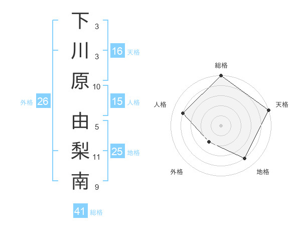 下川原 由梨南さんを姓名の画数から五運を鑑定