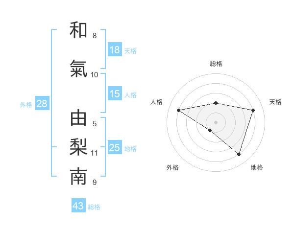 和氣 由梨南さんを姓名の画数から五運を鑑定