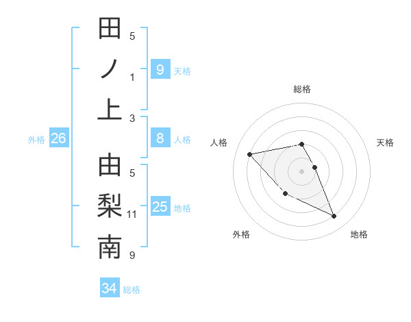 田ノ上 由梨南さんを姓名の画数から五運を鑑定