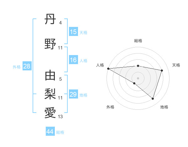 丹野 由梨愛さんの総格は44画の2点
