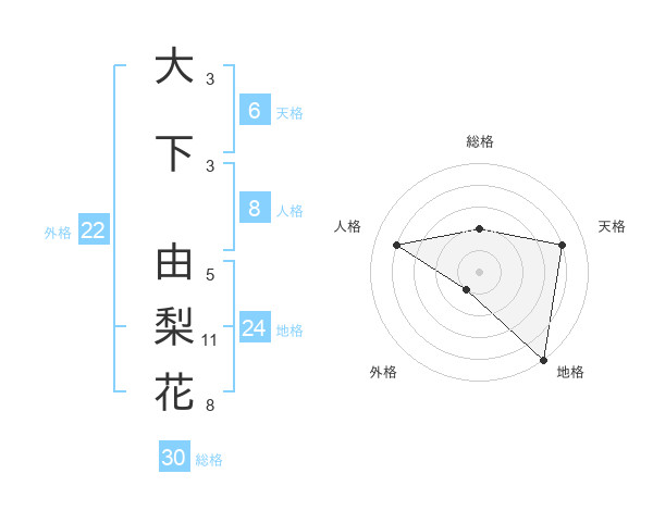 大下 由梨花さんを姓名の画数から五運を鑑定
