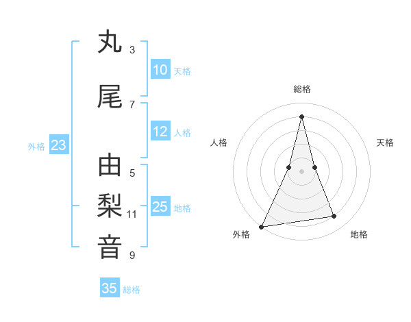 丸尾 由梨音さんの総格は35画の4点!