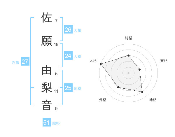 佐願 由梨音さんを姓名の画数から五運を鑑定