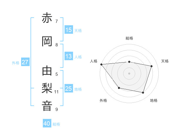 赤岡 由梨音さんを姓名の画数から五運を鑑定