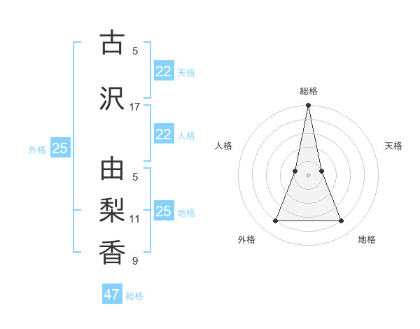 古沢 由梨香さんを姓名の画数から五運を鑑定