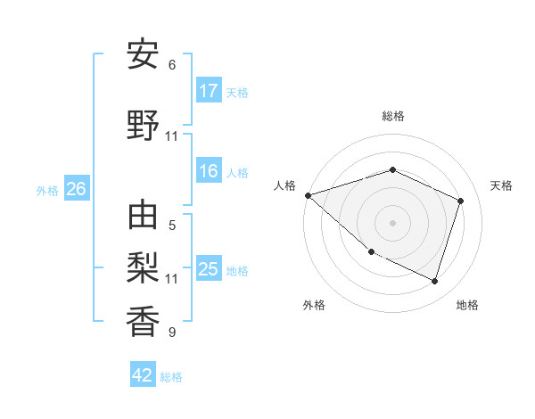 安野 由梨香さんを姓名の画数から五運を鑑定