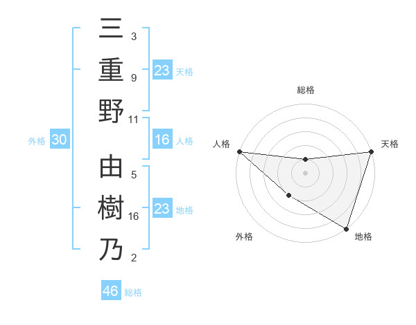 三重野 由樹乃さんを姓名の画数から五運を鑑定