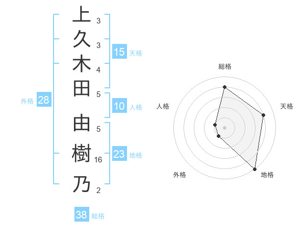 上久木田 由樹乃さんの総格は38画の4点!