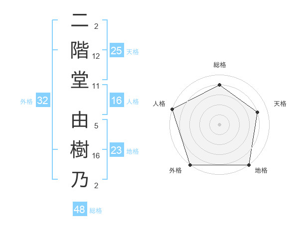 二階堂 由樹乃さんを姓名の画数から五運を鑑定