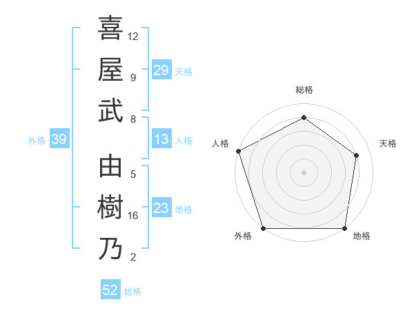 喜屋武 由樹乃さんの外格は39画の5点!
