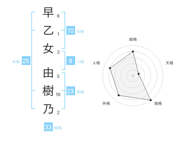 早乙女 由樹乃さんを姓名の画数から五運を鑑定