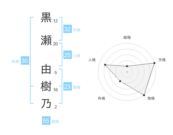 黒瀬 由樹乃さんの天格は32画の5点