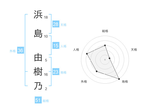浜島 由樹乃さんを姓名の画数から五運を鑑定