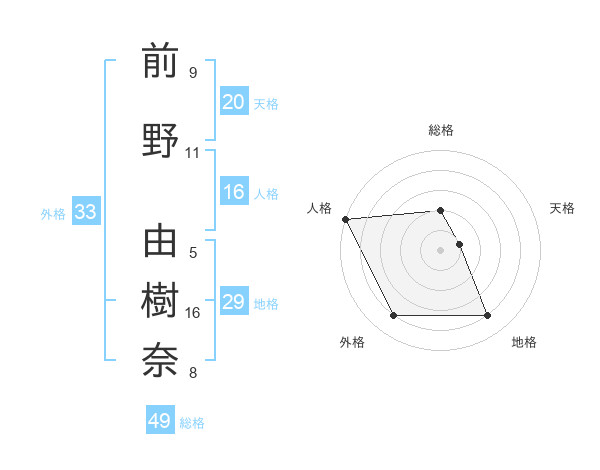 前野 由樹奈さんの総格は49画の2点!