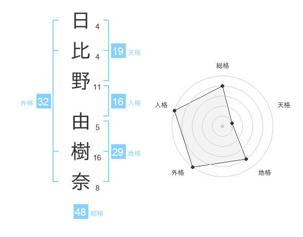 日比野 由樹奈さんを姓名の画数から五運を鑑定