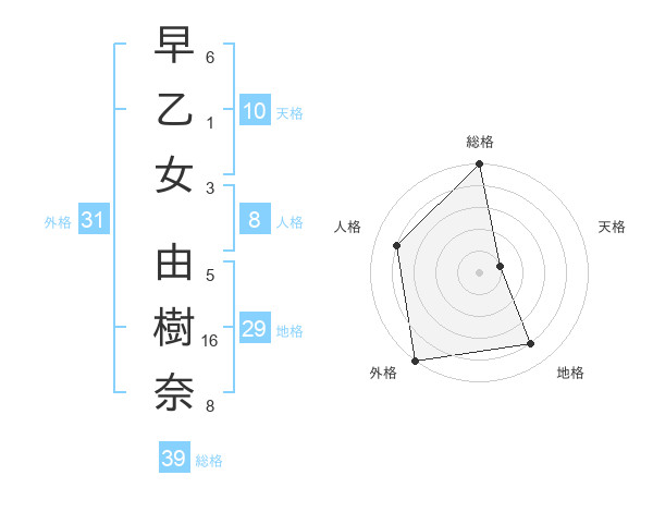早乙女 由樹奈さんを姓名の画数から五運を鑑定