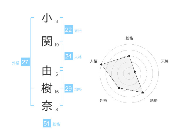 小関 由樹奈さんを姓名の画数から五運を鑑定