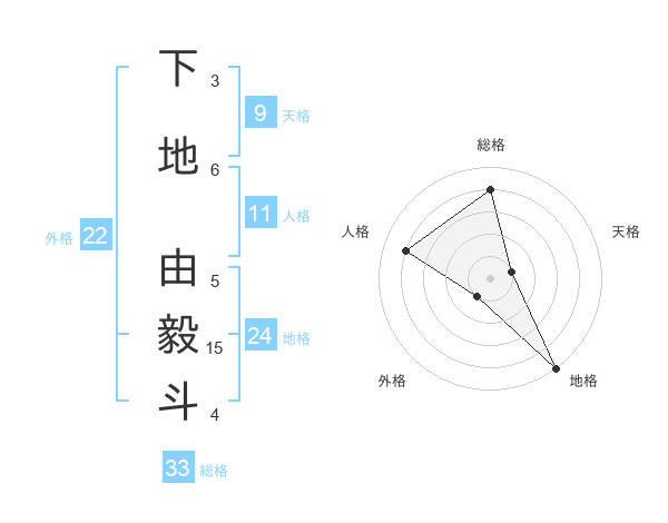 下地 由毅斗さんを姓名の画数から五運を鑑定