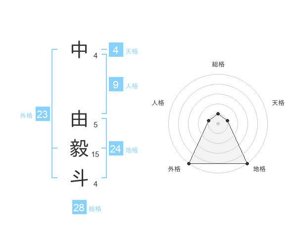 中 由毅斗さんの外格は23画の5点!