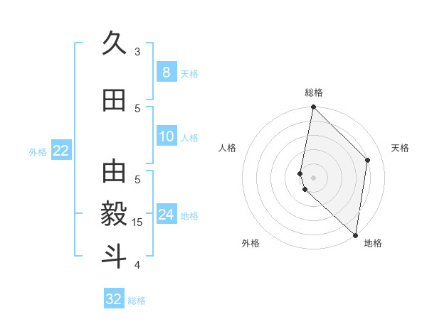 久田 由毅斗さんを姓名の画数から五運を鑑定