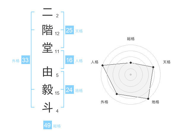 二階堂 由毅斗さんを姓名の画数から五運を鑑定