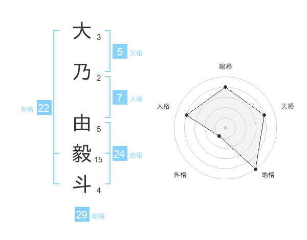 大乃 由毅斗さんの総格は29画の4点!