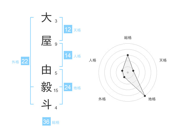 大屋 由毅斗さんを姓名の画数から五運を鑑定