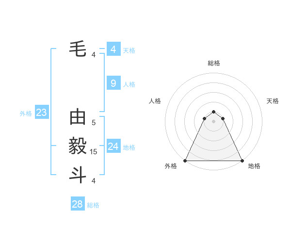 毛 由毅斗さんの外格は23画の5点!