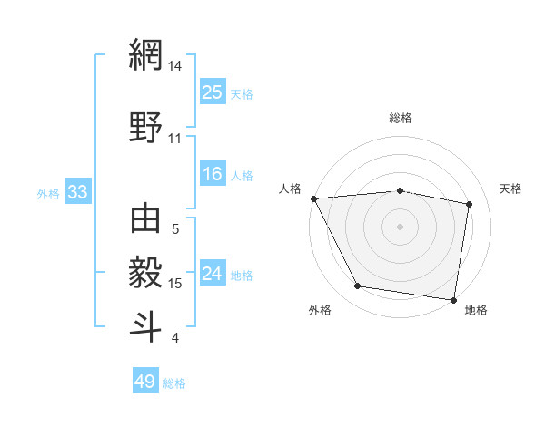 網野 由毅斗さんを姓名の画数から五運を鑑定