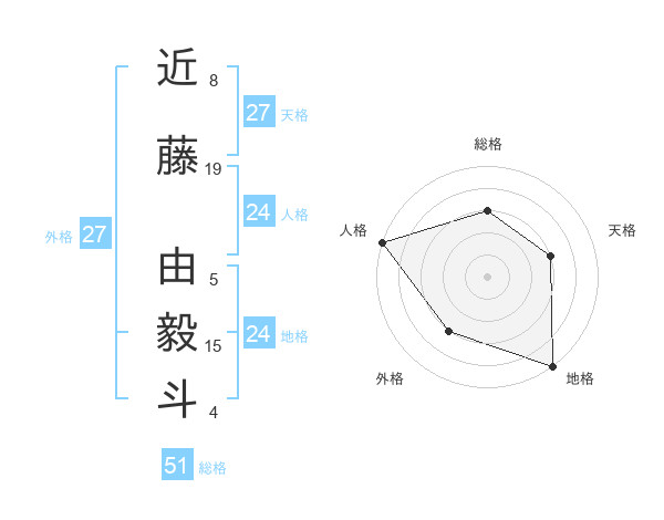 近藤 由毅斗さんの総格は51画の3点