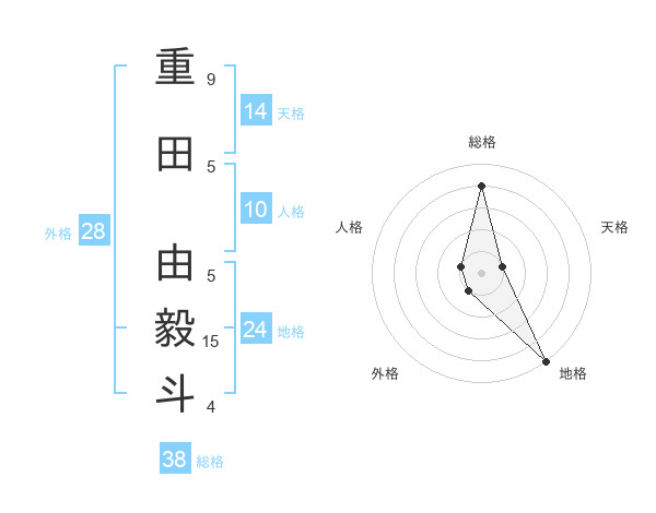 重田 由毅斗さんを姓名の画数から五運を鑑定