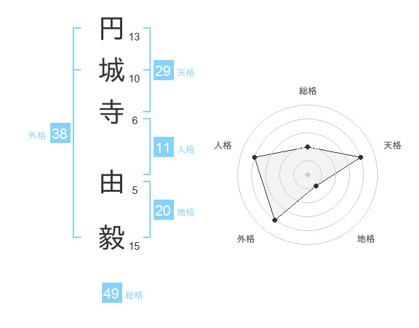 円城寺 由毅さんの総格は49画の2点!