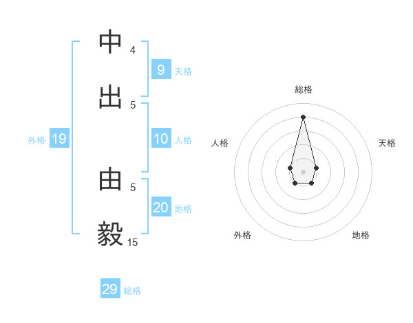 中出 由毅さんの総格は29画の4点!
