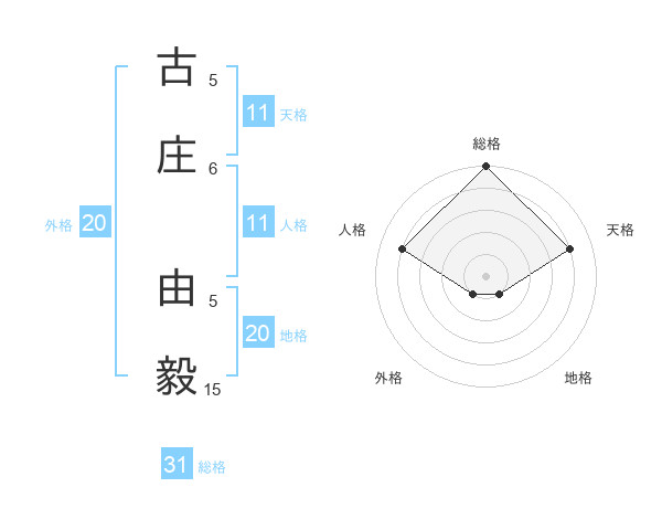 古庄 由毅さんの総格は31画の5点!
