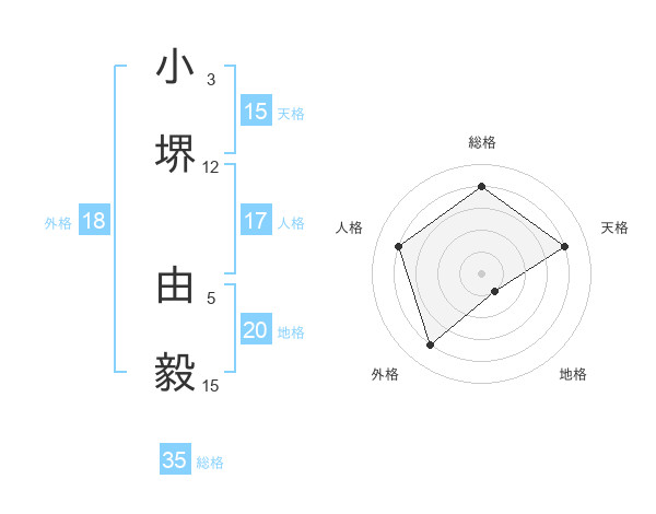 小堺 由毅さんの天格は15画の4点!