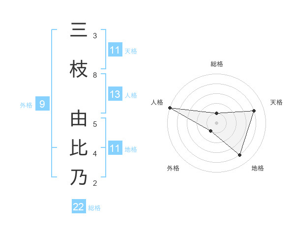 三枝 由比乃さんの総格は22画の1点!