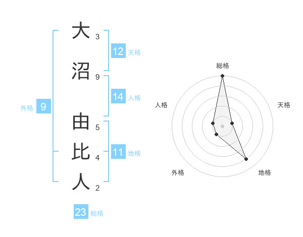 大沼 由比人さんを姓名の画数から五運を鑑定